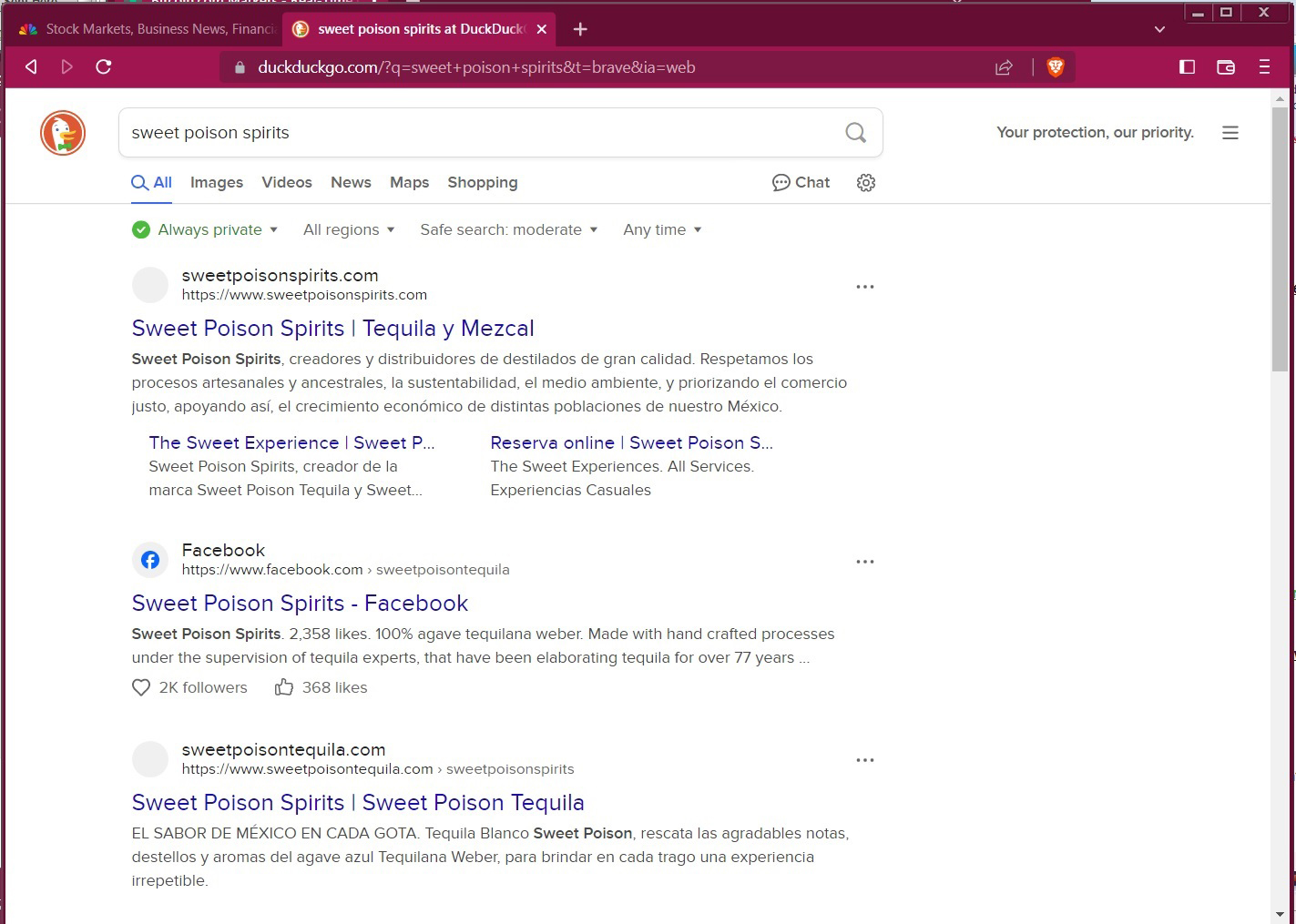 Last night I was up late doing investment research. Sometimes I use my intuition to get new ideas and last night I asked my consciousness what stock should I research and what came to me is to try the ticker POIS. I did a search and while there was no ticker POIS the search tool did pick up some tickers related to a company named "Sweet Poison Spirits". Since immediate pricing wasn't available on the stocks in the middle of the night I decided to check out their company.